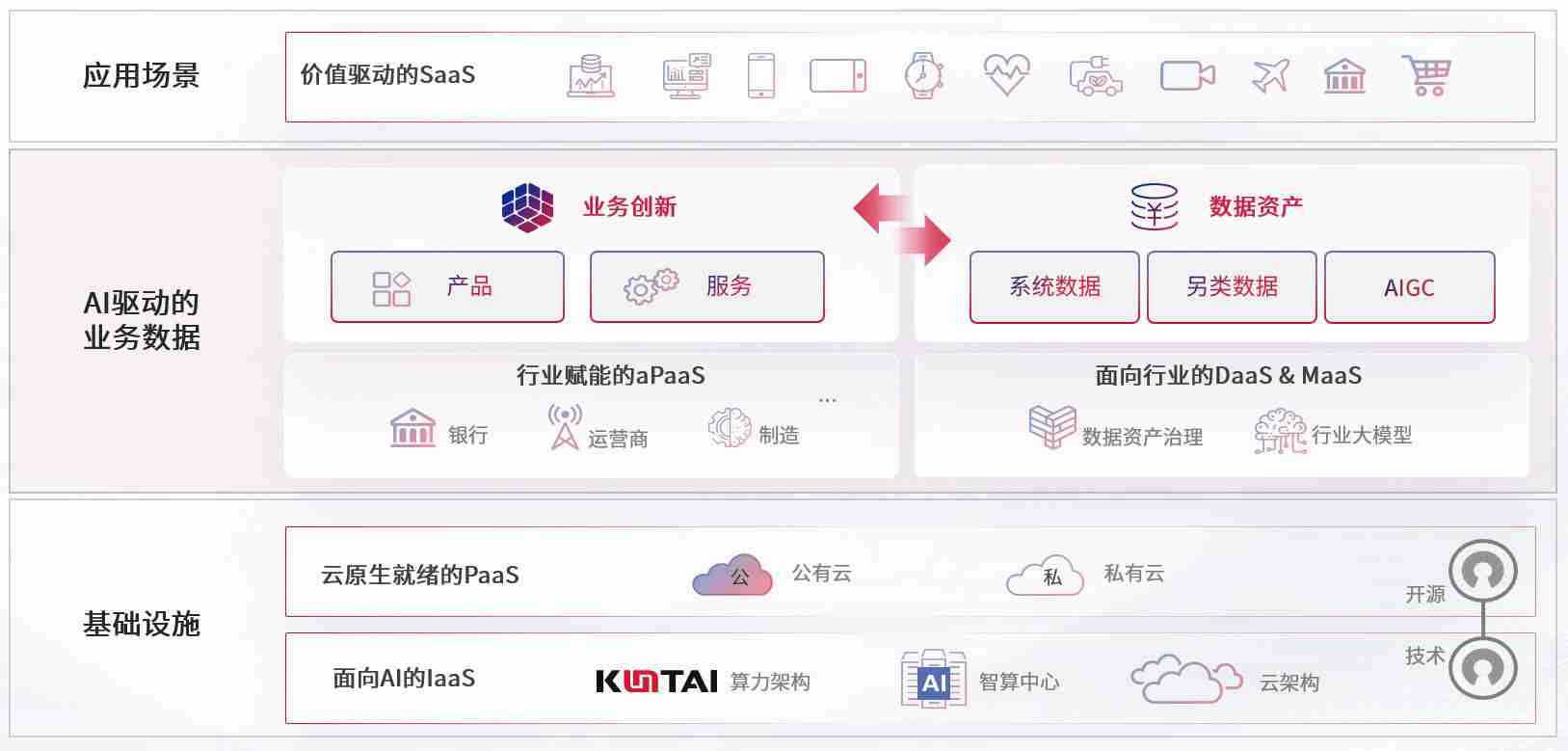 数字时代,,,围绕企业数字化转型的关键要素,,,,GG钱包数码开创性的提出数云融合战略和技术体系框架,,,着力在云原生、、、、数字原生、、、、AI原生和信创产业上架构产品和服务能力,,为处在不同数字化转型阶段的快消零售、、、、汽车、、金融、、医疗、、政企、、、、教育、、、、运营商等行业客户提供泛在的敏捷IT能力和融合的数据驱动能力,,构建跨界融合创新的数字业务场景和新业务模式,,,助力企业级客户建立面向未来的核心能力和竞争优势,,全面推动社会的数字化、、、智能化转型升级。。。。